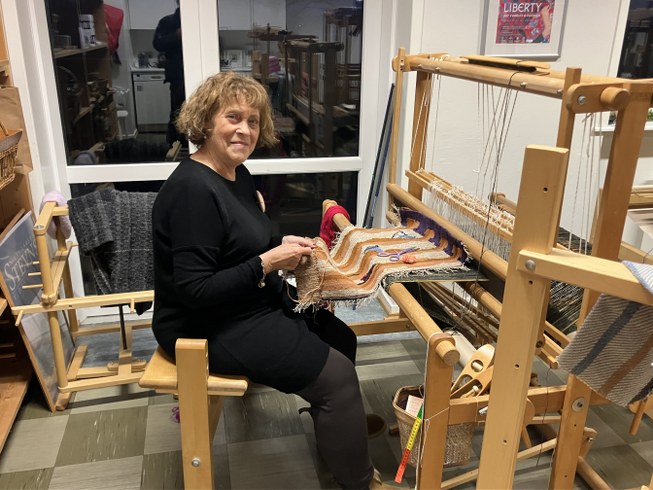 I vævestuen på Tversted Skole kan du ofte finde Bente Winther i færd med at væve selv eller undervise i håndværket. Hun begyndte at væve for 50 år siden, da hun gik på seminariet og blev helt opslugt af et kursus i vævning.