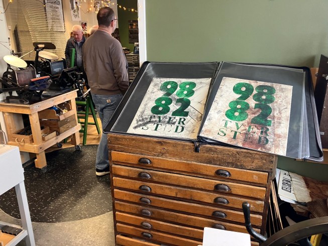 Trykkeriet laver alt fra typografiske tryk til træ- og linoleumssnit. Der trykkes bryllupsinvitationer, postkort, plakater samt nummererede værker. Til julemarkedet vil de have et udvalg af kort, papirengle, hjerterankere m.m.