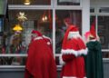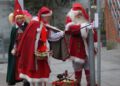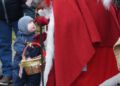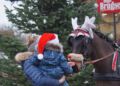 På Bindslev Torv stod de første børn og voksne klar til klar til at hilse på de tre Nisser, der ankom i hestevogn trukket af hesten Rudolf. Det må den da hedde, når den har en rød tud på mulen.
