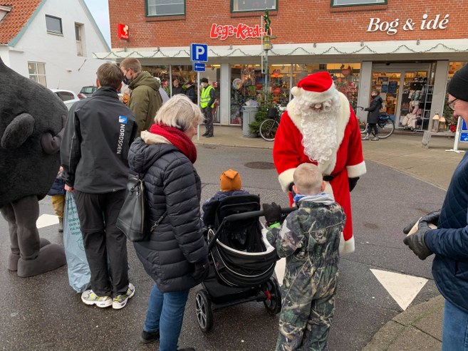 Julemanden havde i anledning af fjerde søndag i advent fået besøg af både Klumpe fra Nordsøen Oceanarium og Freder Fyrtårn. Deres tilstedeværelse var så populær blandt de yngste, at handelschefen måtte hente mere slik.