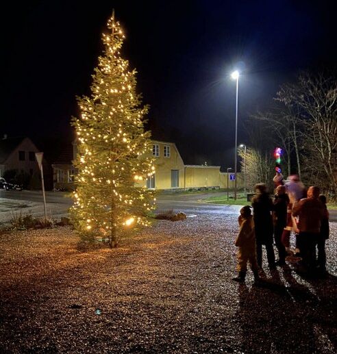 Henved et halvt hundrede borgere, både store og små, deltog fredag klokken 17 i Juletræstændingen ved kirkepladsen i Vidstrup.