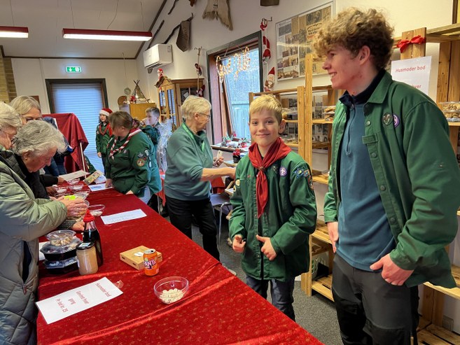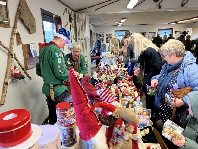 De lokale spejdere trækker rigtig mange til deres loppemarkeder, men julemarkedet har altså sin helt egen hyggelige stemning, som da også lokker rigtig mange gæster til de flotte boder og caféen, hvor der sælges æbleskiver, glögg, hjemmebag og kaffe.