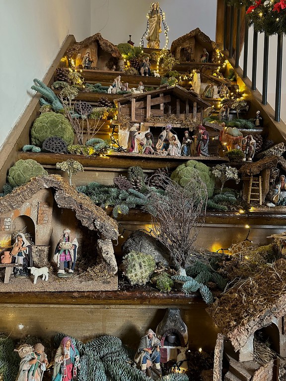 Klostrets smukke julekrybbe med de fine figurer fra Piazza Navona i Rom er allerede fundet frem og er klar til, at man åbner for at fejre julen.