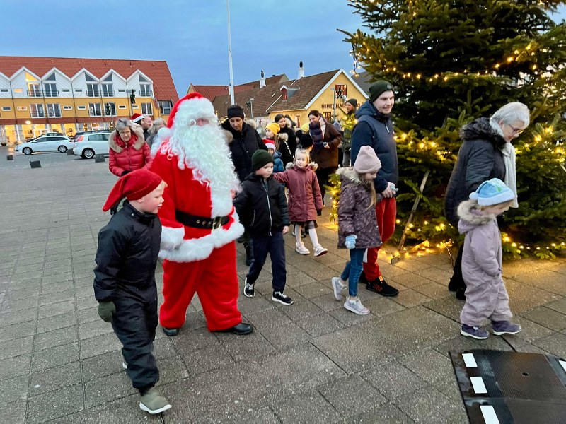 Efter en velkomst ved handelschef Per Martensen fra Hirtshals Handel & Erhverv dukkede julemanden naturligvis op og trak masser af børn og voksne med i dansen omkring det tændte juletræ.