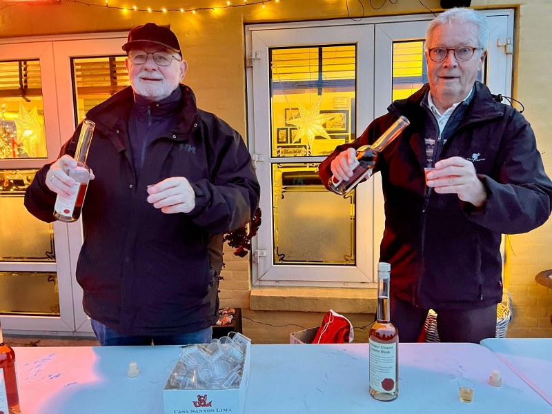 Mens der blev sunget og danset samt bagefter, delte Svend Ravn og Flemming Søgaard rundhåndet ud af den gode bjesk til de voksne og slik til børnene.