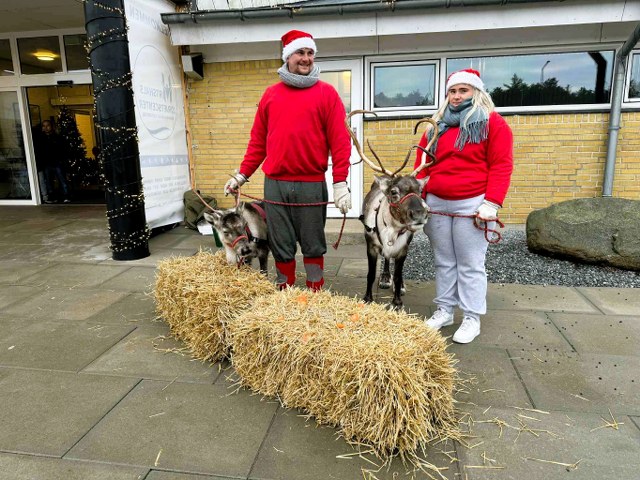 Julestemningen var allerede højstemt, da den lokale julemand forinden gjorde sin entré i hallen. Han sørgede for klassiske julesange og dans omkring juletræet. Udenfor ventede en særlig oplevelse med rigtige rensdyr, som børnene kunne se og klappe. De tamme dyr var ledsaget af et par gæve nisser.