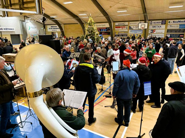 Musikken manglede heller ikke. Bagterp Blæseorkester, med rødder tilbage til 1973, blæste julestemningen i vejret med klassiske julesange og højt humør, der fik taget til at lette på Hirtshals Idrætscenter.