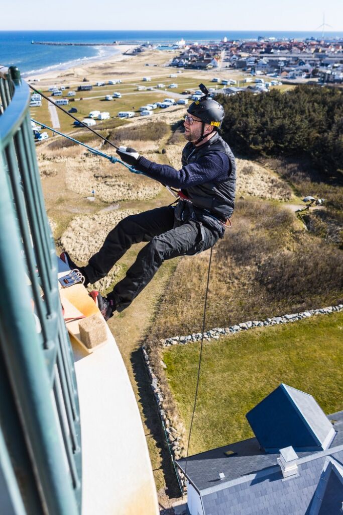 Ved Hirtshals Fyr er der igen rappelling de 35 m med ad fyrtårnet.