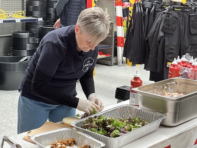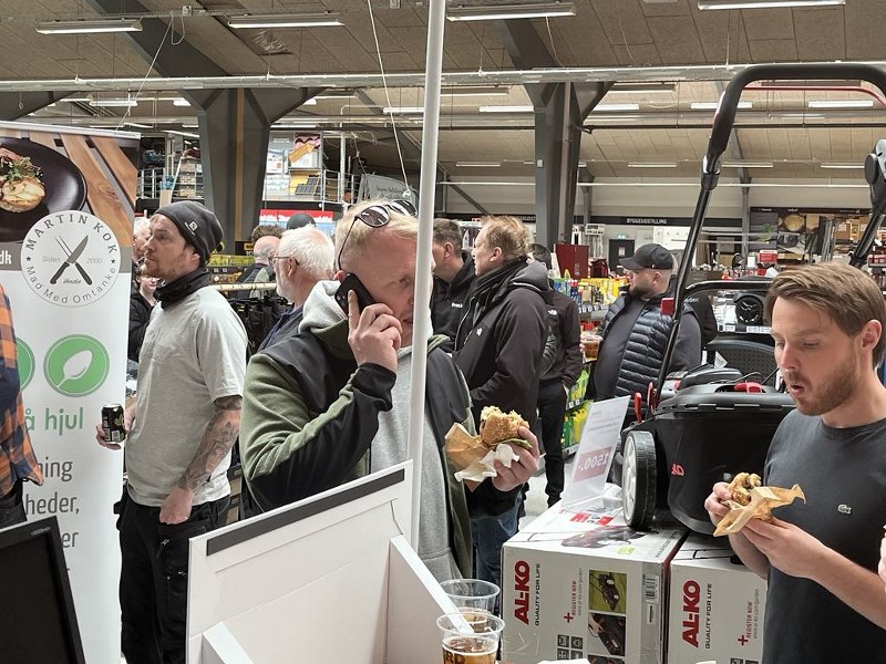 Til frokost var Bygma vært for en gratis pulled pork burger med et krus fadøl, hvilket rigtig mange benyttede lejligheden til at nyde.