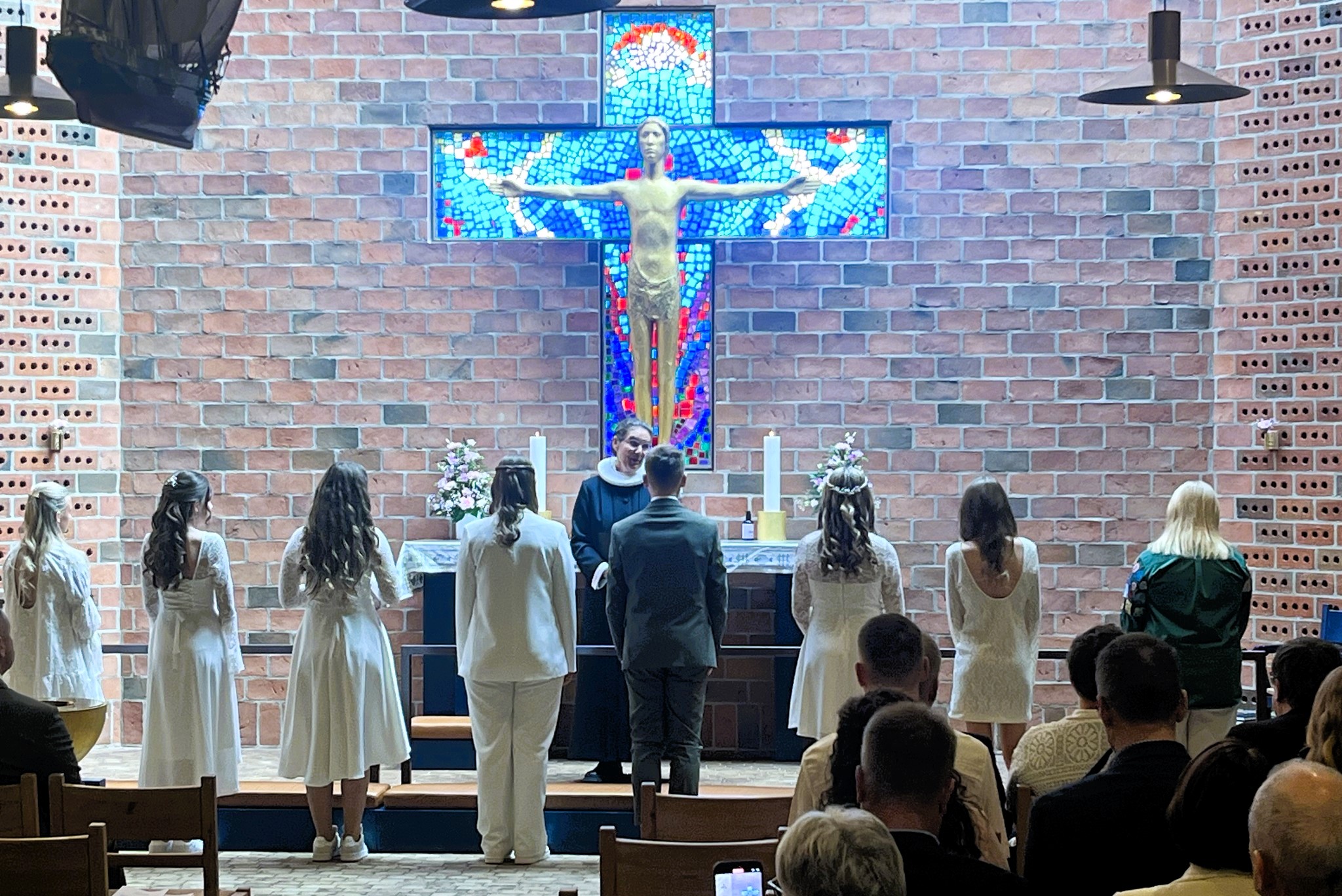 Denne noget forblæste søndag, hvor solen dog skinner og 80 året for befrielsen markeres, blev otte smukke unge mennesker konfirmeret i Emmersbæk Kirke.