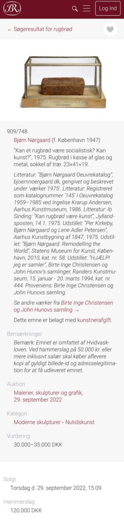 Rugbrødet er fra 1975, så man kunne måske forledes til af tro, at den høje kilopris skyldes, at der er tale om et brød fra en særlig god årgang.