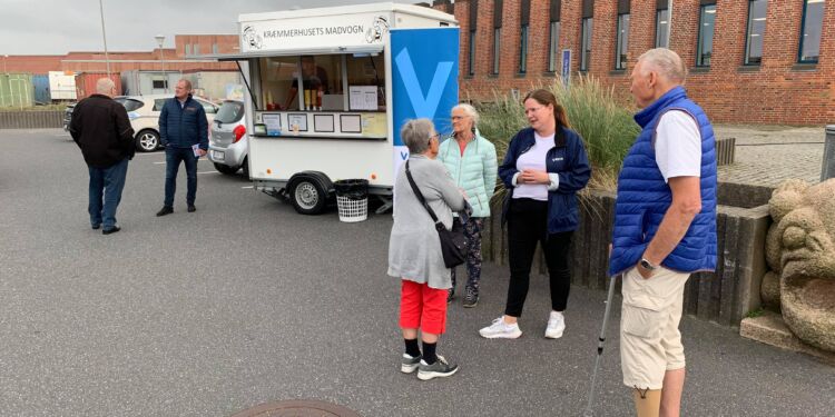 Mads Duedahl, som er spidskandidat for Venstre ved regionsrådsvalget i Nordjylland, mødte tirsdag sammen med Lone Olsen og Christian Borrisholt Steen op for at uddele gratis hotdogs ved Det Gamle Rådshus i Hirtshals.