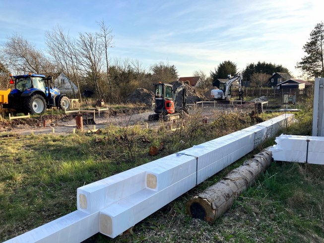 På Tannisbugtvej i Tversted har håndværkerne netop indledt det bæredygtige byggeri af Dorthe Hansens kommende hjem og keramikværksted.