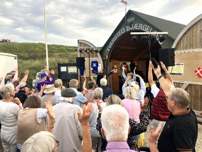 Søndag den 3. august 2025 fyrede Niels Ole Sørensen og hans himmelske husorkester, som bandet beskrives af lokale Christian Andersen, op under Tversted Bjærgelaugs Bådhuset med fællessang og folkekære hits.