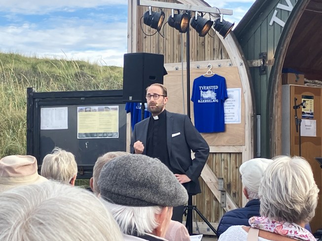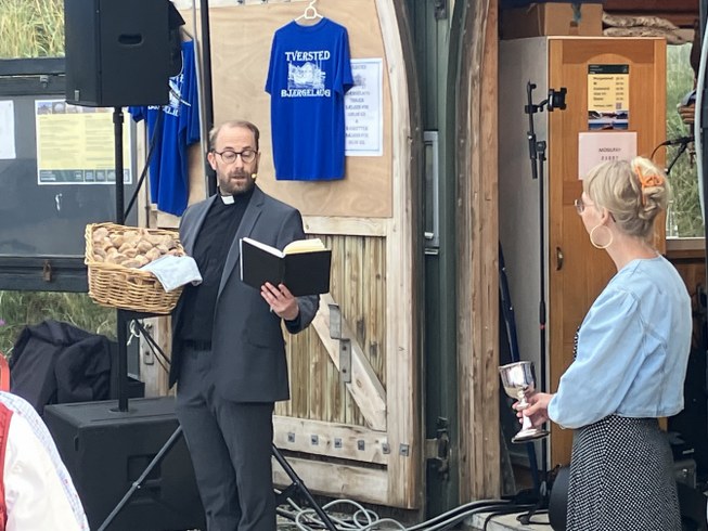 De mange deltagere fik også gudstjenestens traditionelle indhold med trosbekendelse, velsignelse, læsning og nadver med brød fra Skolekøkkenet i Tversted og vin fra Restaurant Tannishus – med og uden alkohol.
