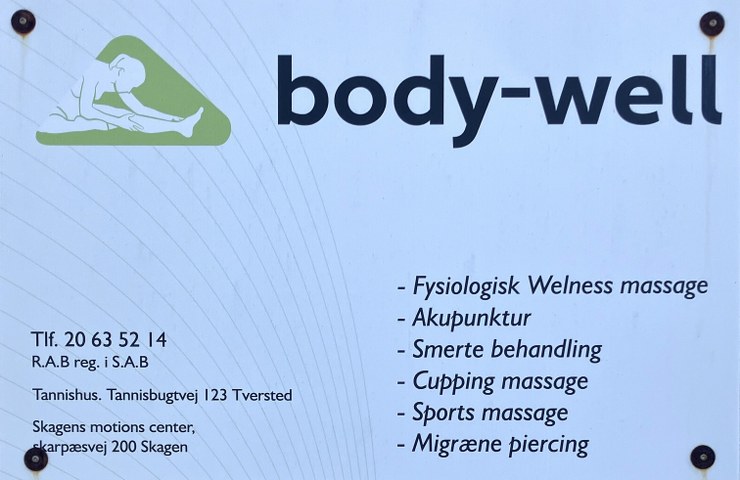 Body Well har klinik på Tannishus i Tversted og i Skagens Motion Center på Skarpæsvej nummer 200.