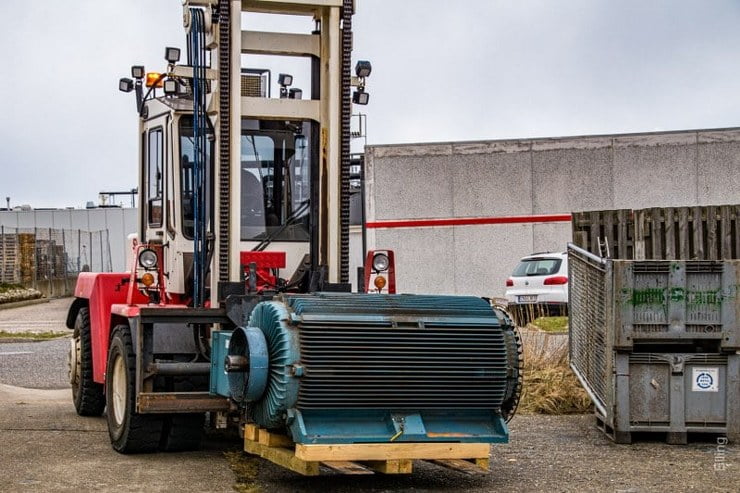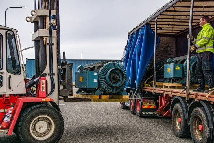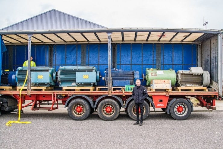 Virksomheden modtog i dag et helt vognlæs brugte vindmøllegeneratorer, som trænger til en opgradering… Meningen er naturligvis, at de skal tilbage i nye vindmøller.