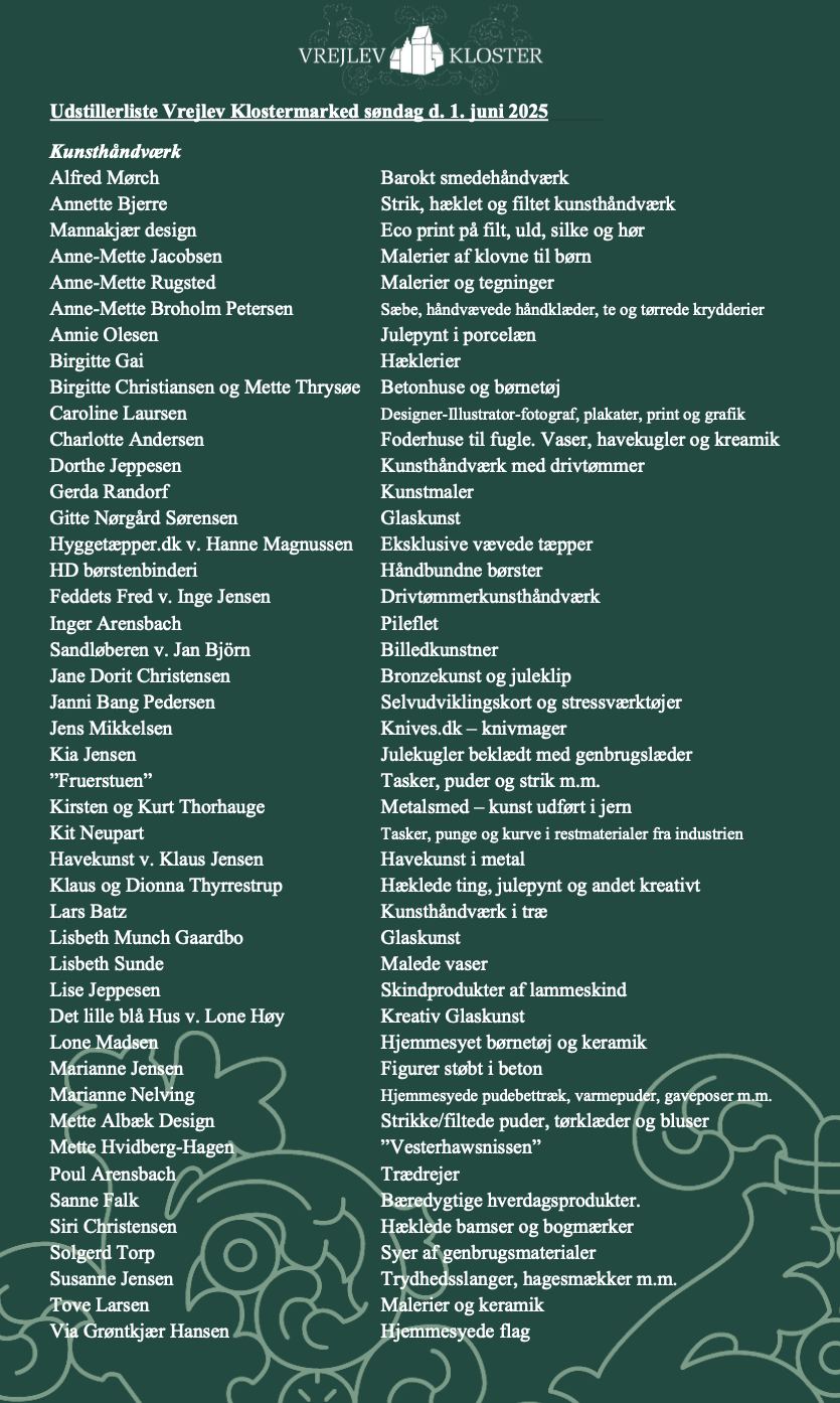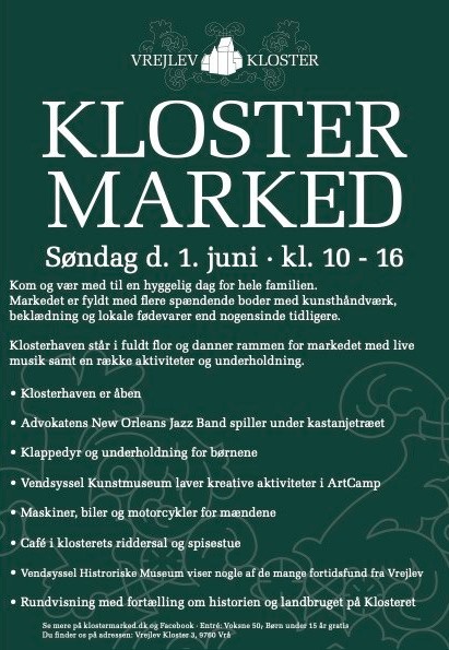 Adressen til Vrejlev Klostermarked er: Vrejlev Kloster 3, 9760 Vrå.