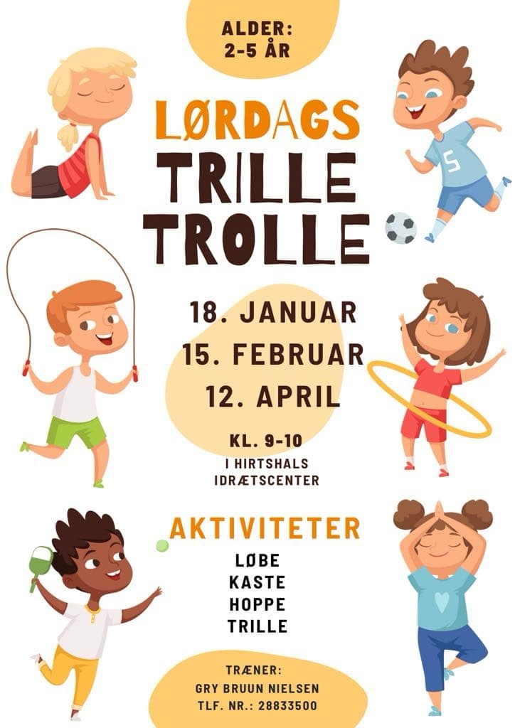 Nu på lørdag den 18. januar inviterer Hirtshals Håndboldklub – HH80 – byens mindste børn til en time fyldt med sjov og bevægelse. Arrangementet “Lørdags Trille Trolle” er for børn i alderen 2-5 år og finder sted i Hirtshals Idrætscenter fra kl. 9-10.