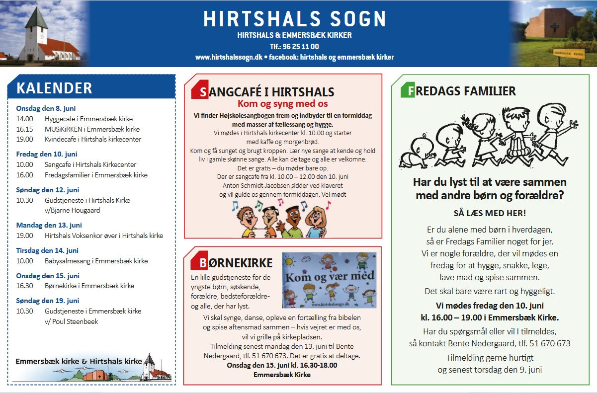 Nedenfor bringes programmet for de næste par ugers begivenheder i Hirtshals Sogn.
