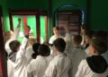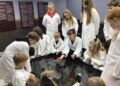 Her forvandlede eleverne sig sammen med underviser Lone Venderby fra Skoletjenesten til arkæologer for en dag, da de iklædt hvide kitler brugte deres ekspertviden om jernalderen til at undersøge nogle af mere end 2000 år gamle moseofringer, der befinder sig på Vendsyssel Historiske Museum.