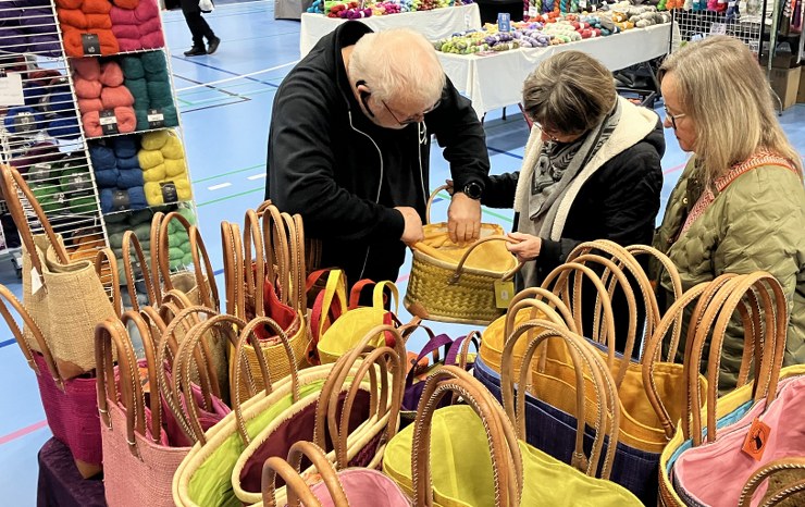 På KREA-messen stillede de op med blandt andet flere hundrede forskellige krydderier, masser af spændende garn og broderi, flotte farverige tasker produceret af afrikanske kvinder, som også får en god del af salget, skåle og skærebrætter i teak, legetøj og meget mere.