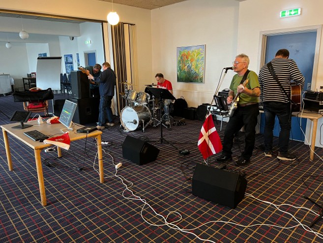 Mens præsterne søndag formiddag prædikede i kirkerne, forsøgte musikerne i det lokale band Humphrey at få styr på teknik og akkorder, før de giver koncert ved de traditionsrige julefrokoster på Hotel Hirtshals.
