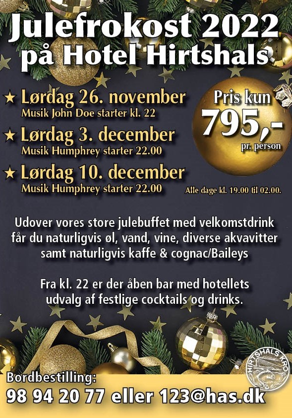 Desværre er der allerede udsolgt til julefrokosten den 3. december, men er man hurtig, er der endnu få billetter til de to andre.