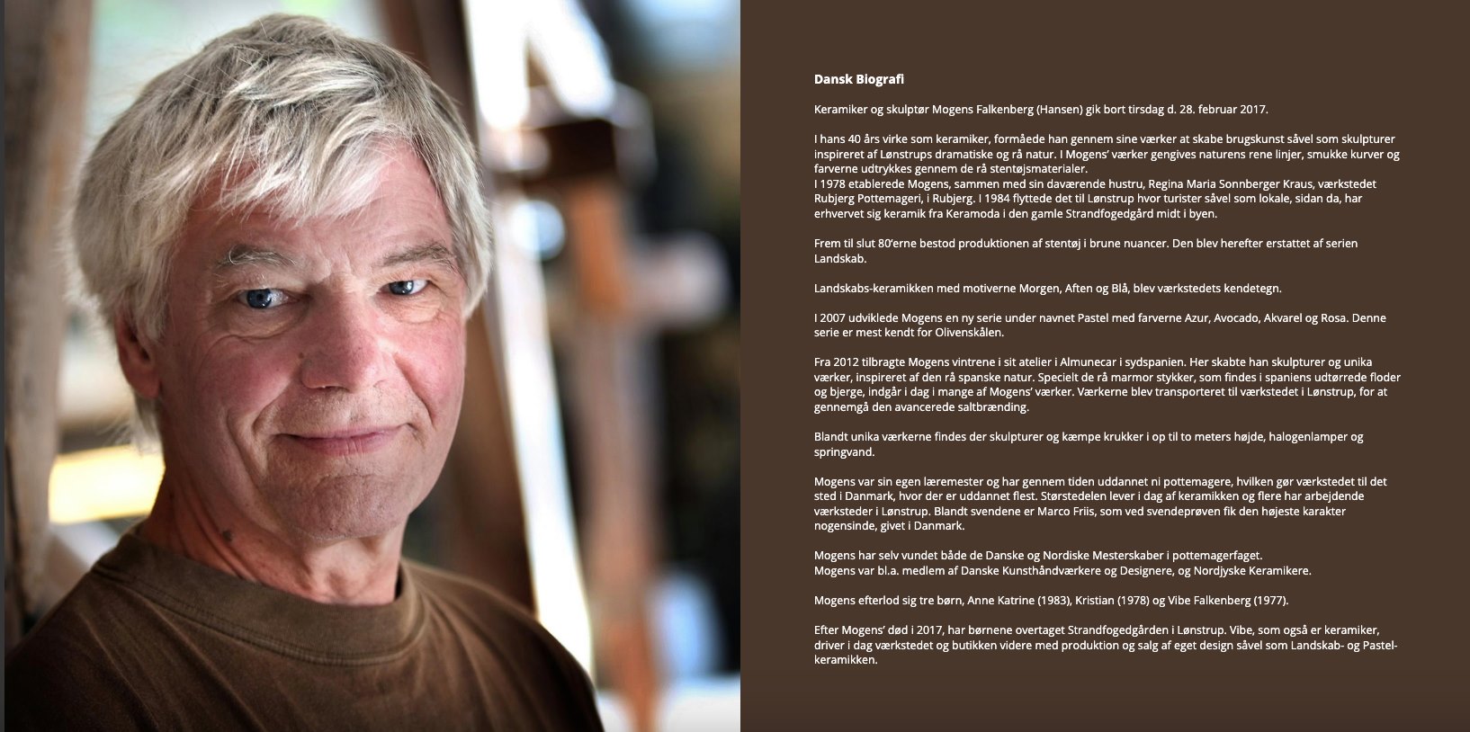 Mogens Falkenberg var keramiker, skulptør og designer. Han gik bort for snart 4 år siden. Siden har Kristian Falkenberg arbejdet on and off på en bog, der samlede farens værker.