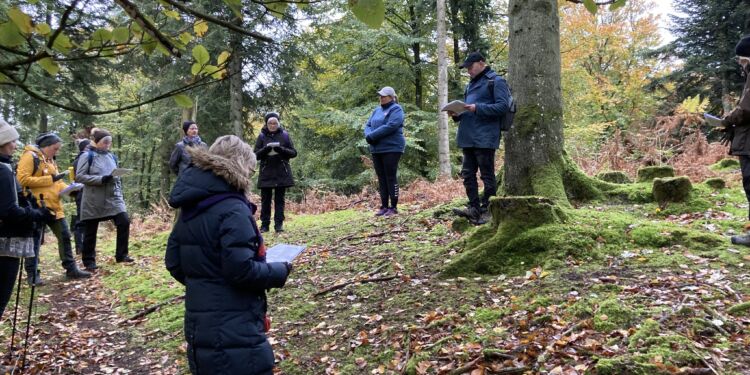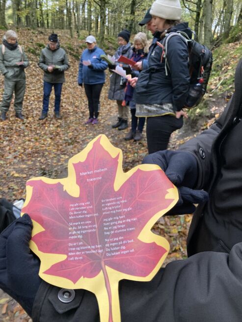 Tovholdere og deltagere snakkede undervejs om fortællingen. Til sidst hørte de Halfdan Rasmussens digt Mørket mellem træerne. Kaffe blev der selvfølgelig også tid til.