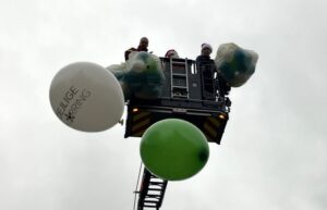 Sparekassen Danmark havde sponsoreret gavekort, som var i en del af de mange balloner, der blev kastet ud fra Falcks stigevogn.