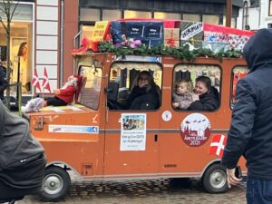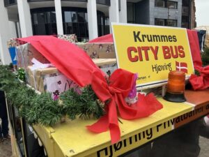 Krummetoget kørte ikke denne lørdag, da der ikke var plads på Springvandspladsen. Til gengæld kørte Krummes City Bus en lille tur i Strømgade med event- og aktivitetschef i den lokale handelsstandsforening, Rikke Ejsenhardt, bag rattet. Krummetoget kører igen på lørdag klokken 11-13.