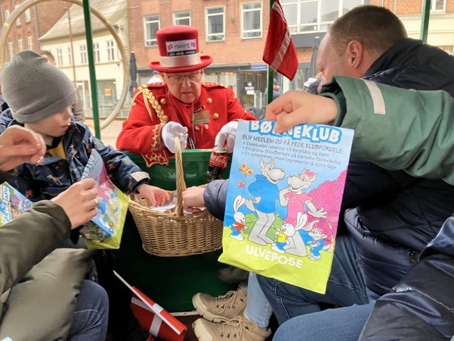 Varehuschef Jørgen Haldrup Petersen og Ulven Billie fra A-Z gav børnene på toget en Ulvepose og varehuschef Morten Kjær fra Føtex sponserede et gavebevis. Krumme havde naturligvis en gratis billet og vingummibamser til børnene.