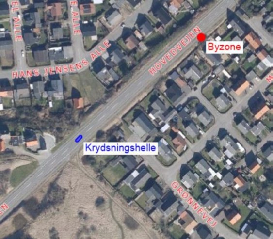Der er mange krydsende bløde trafikanter på hovedvejen ved Hans Jensens Allé og Grønnevej. For at forbedre sikkerheden og trygheden for dem, etableres der nu en krydsningshelle på Hovedvejen.