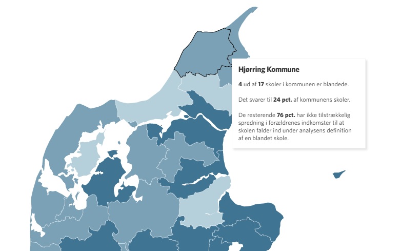 Det er kun i få kommuner, hvor over halvdelen af skolerne er blandede. Det drejer sig som allerede afsløret om knap hver fjerde skole i Hjørring Kommune.