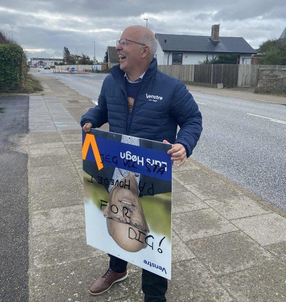 Det hele begyndte, da Lars Høgh opdagede, at hans valgplakat i Hirtshals var blevet sat op med hovedet nedad. En fejl – eller måske en bevidst gimmick – fra et par yngre plakatopsættere, som ville skabe lidt “sjov i gaden”. Opsætningen blev hurtigt spottet af Martin Vinther, som lagde et humoristisk opslag ud på Instagram, hvor han gjorde grin med både plakaten og Venstre.