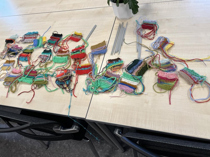 Dernæst gik aftenens gøremål i gang, og som altid var det Anne-Marie Hougaard, der havde en sjov aktivitet med. Alle, der havde lyst, deltog i det sjove strikkespil, og der blev grinet og snakket på livets løs. Spillet mundede ud i nogle sjove og kreative firkanter. Da spillet var færdigt, blev der drukket kaffe og spist hjemmebagt kage.