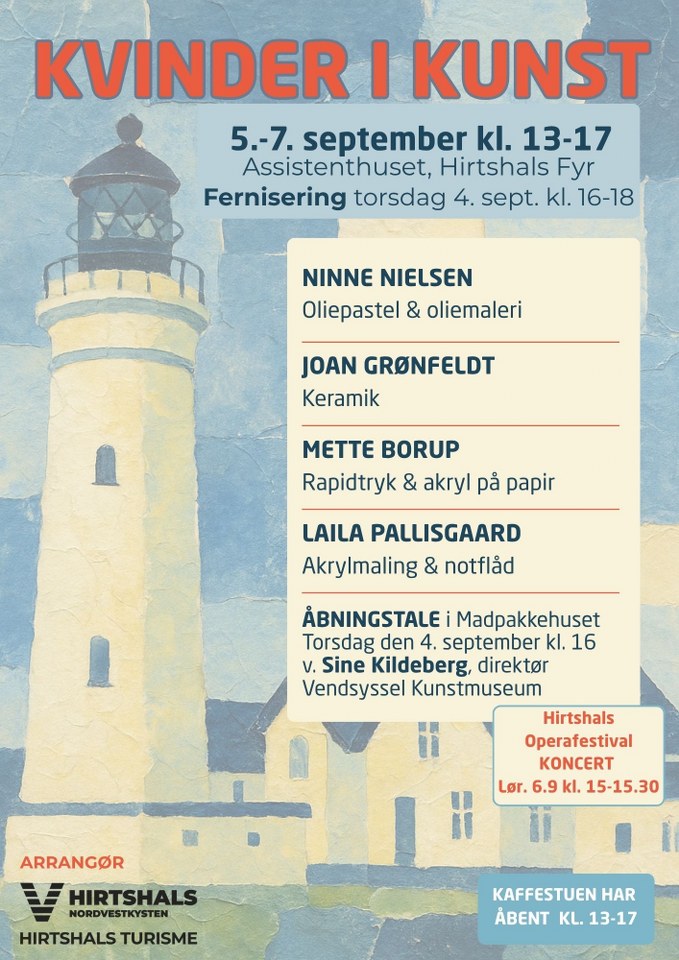 Udstillingen Kvinder i Kunst åbnes med en fernisering torsdag den 4. september i Madpakkehuset ved Hirtshals Fyr.