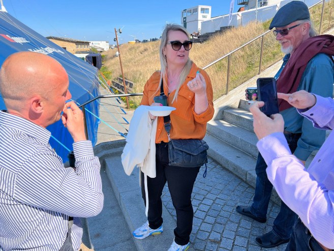 Med som hjælper havde de skarpe elever imidlertid vicerektor Lars Høgh, som i dagens og projektets anledning var rundt i byen og på havnen for at lokke politikere til at smage på de labre larver. Blandt politikerne var som tidligere omtalt blandt andre den radikale Gry Bruun Nielsen, Venstres Jørgen Christensen, socialdemokraten Rasmus Prehn og såmænd naturmødechef Leif Lund Jakobsen.