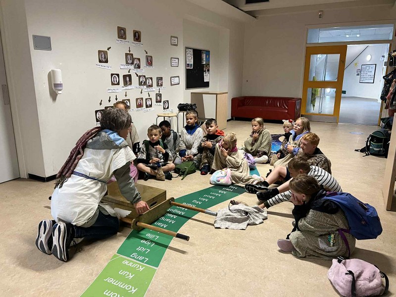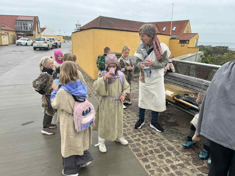 Trods vejret var stemningen høj. Børnene lyttede, spurgte, og levede sig ind i den bibelske fortælling. Anne Gerda havde medbragt forskellige rekvisitter, som gjorde historien endnu mere levende – og børnene fik lov at røre, prøve og opleve undervejs.