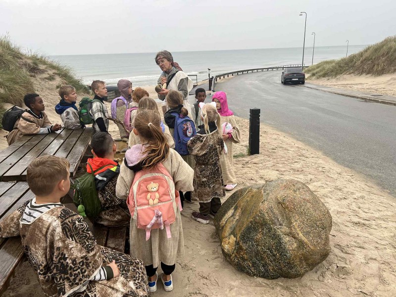Fredag morgen summede det af forventning i 1. A på Hirtshals Skole. Trods regndråber på ruden skulle den planlagte Mosesvandring gennemføres. Altså en anderledes og spændende oplevelse i samarbejde med Anne Gerda fra Kirketjenesten i Hjørring.