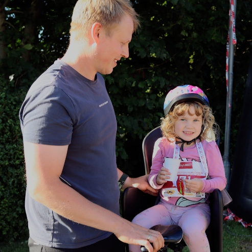 Melanie på 3 år kørte 5 kilometer sammen med sin far Daniel.