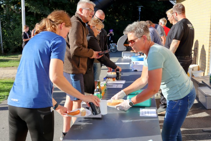 Da løberne, vandrerne og cyklisterne nåede i mål, var der rig mulighed for hygge og for at købe et velfortjent aftensmåltid. Menuen stod på frikadeller, pølser og kold kartoffelsalat til rimelige priser.