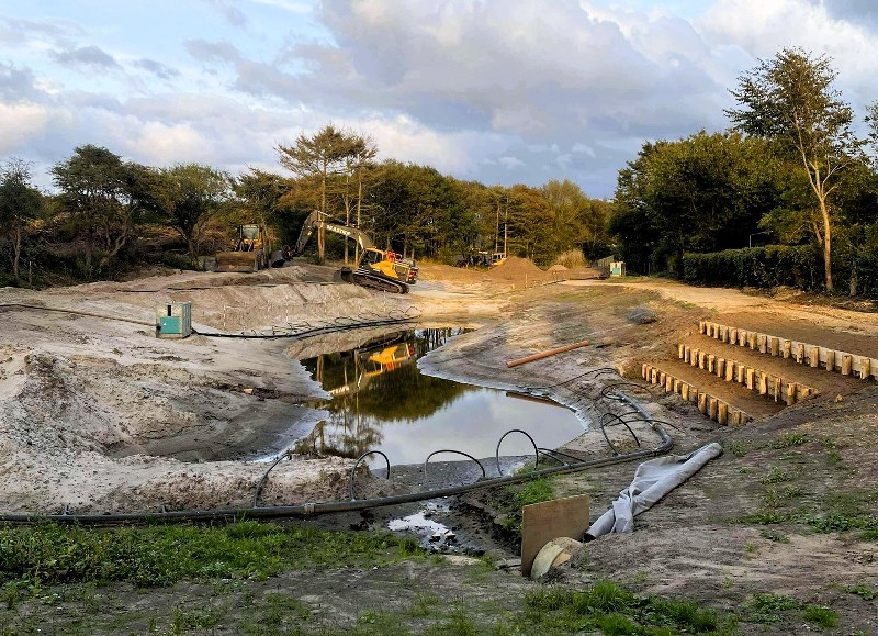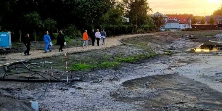 Mod Skolevej er et bakkelandskab ved at tage form. Her mangler dog stadig det øverste lag jord – en blanding af udpint jord og sand, som skal sikre optimale vækstbetingelser for hjemmehørende arter fra de brune klitter. Målet er at fremme biodiversiteten og skabe et robust, lokalt økosystem.