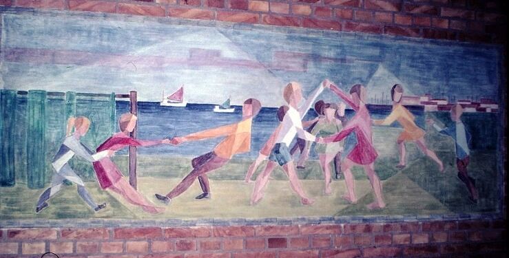 Det er den lokalhistoriske kronikør Frank Chemnitz Larsen, som i gruppen Lilleheden på Facebook gør opmærksom på Lars Nielsens livsbekræftende maleri, der siden 1957 har prydet en væg på Hirtshals Skole.