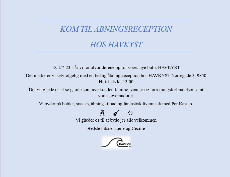 Forinden havde der været op til 50 procent rabat på halvdelen af det hidtidige varelager i den nu nedlagte Butik Laura, hvorved der blev ryddet grundigt ud og op før åbningen af Havkyst.