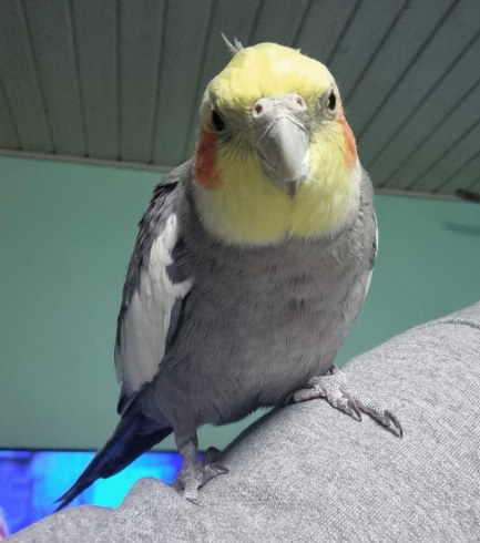 Ofte vil en papegøje vælge at sætte sig så højt som muligt. Stil dig et godt stykke fra fuglen, og kald roligt på den.