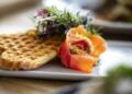 Grillet gulfinnet tun med tangsalat, jomfruhummertatar med hibiscus, koldrøget laks med saltvafler,