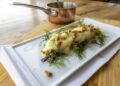 Pescaditos Fritos med salsa & bagt skærising med Sauce vin Blanc.