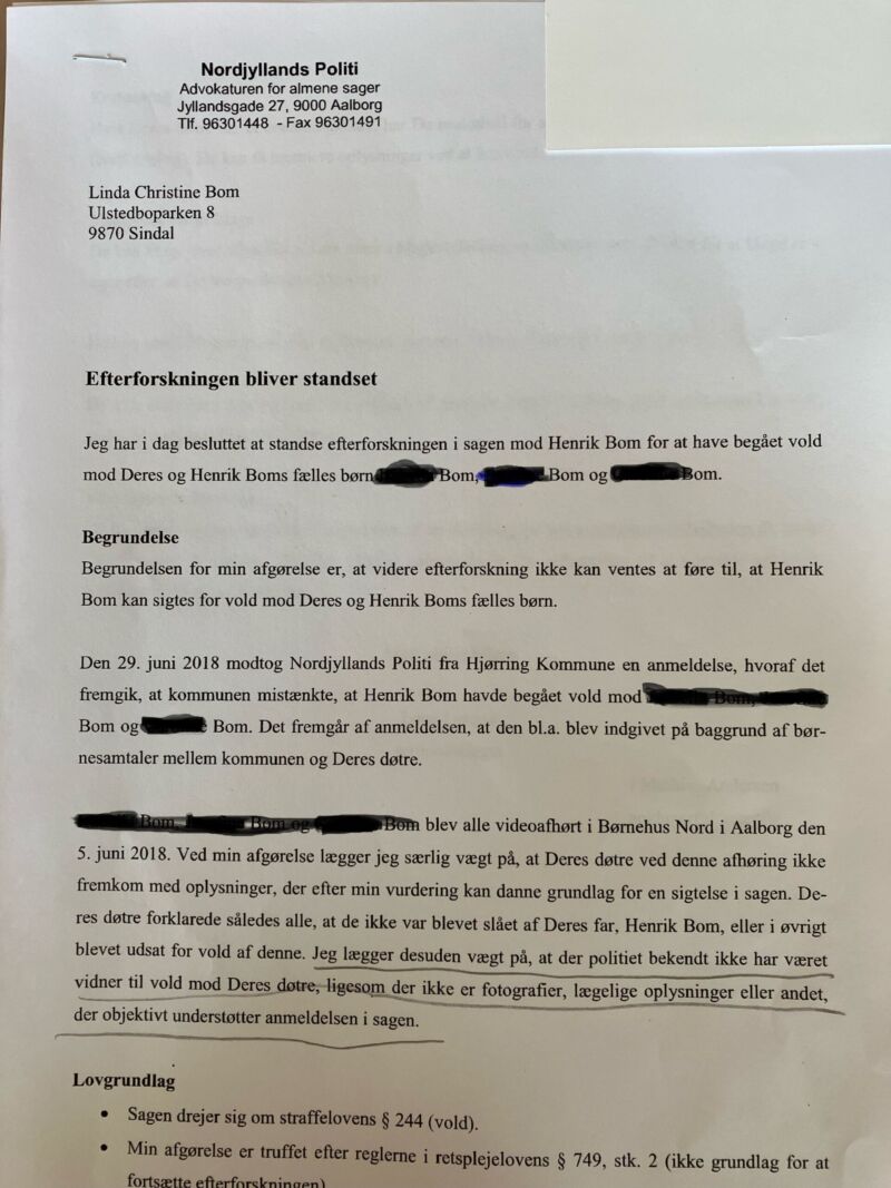 Det er løgn. Kommunen prøver at dække over, at der ikke var grund til at fjernede vores tre kære døtre i 1,5 år!! Der var ingen gyldige indberetninger fra skole eller andre, men kommunen vil ikke erkende fejlen og prøver nu at dække det til med løgne og snyde HELE byrådet, når sagen drøftes onsdag.
